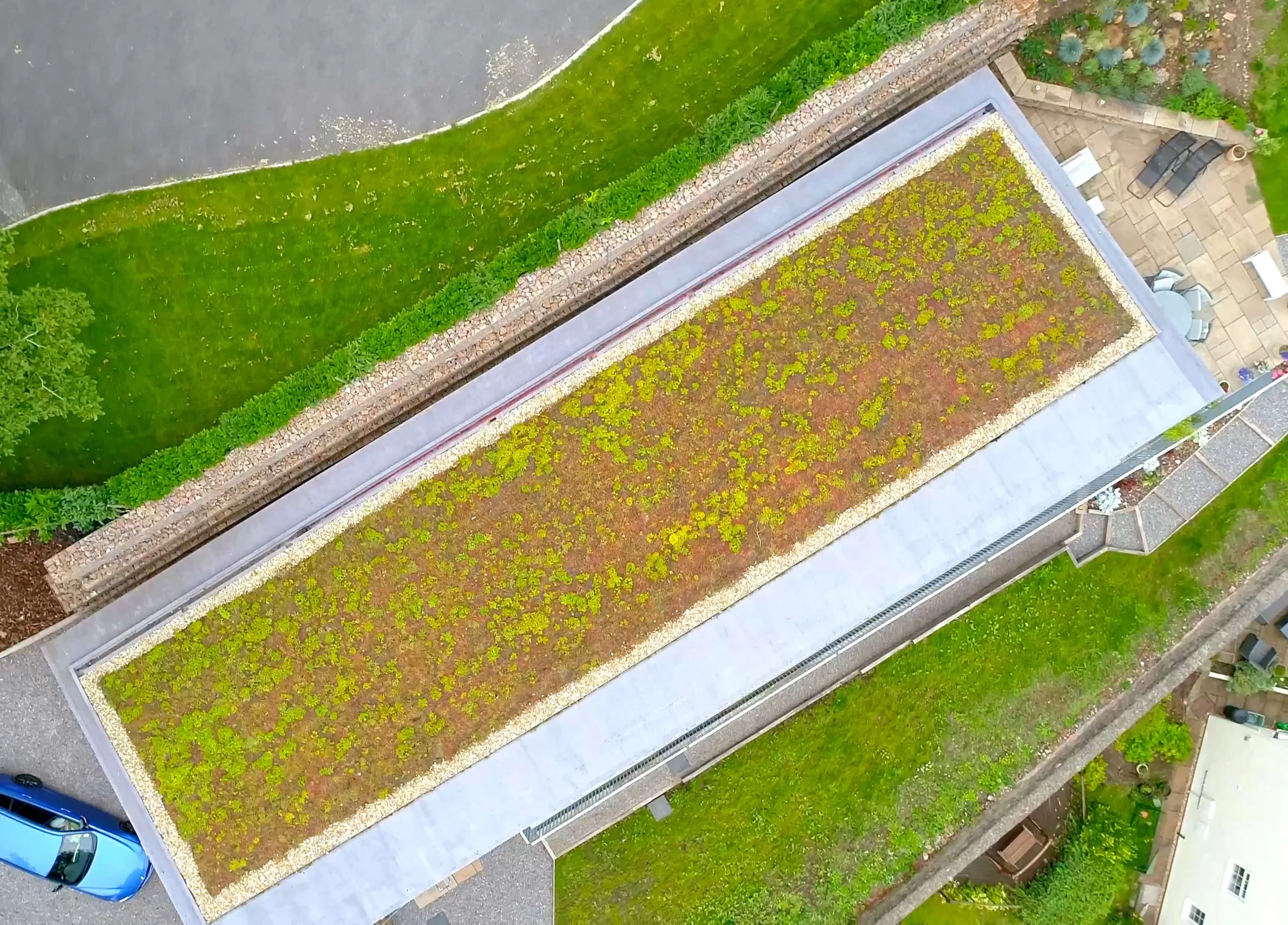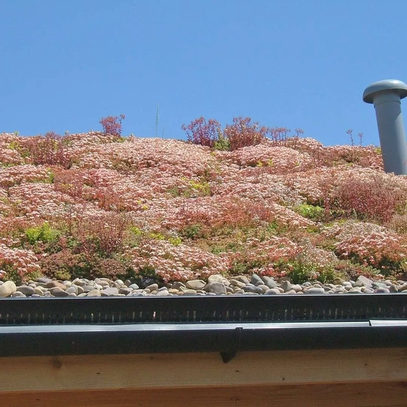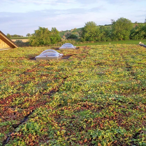 There are two main types of green roofs, the most popular being Extensive, where a shallow compost is topped with low growing, low maintenance vegetation such as sedum.